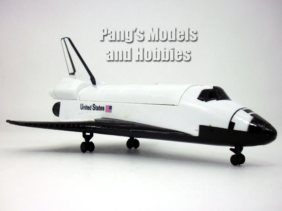 This Space Shuttle model measures about 8.5 inches in length with a wing span of about 5 inches. They are not your typical building kit where one needs to cut pieces out of runners/trees, but instead they come as disassembled toys where one needs to attach the engines, wings and fuselage, etc