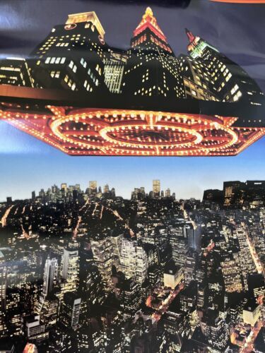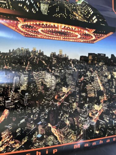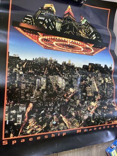 This vintage poster features a Spaceship Manhattan design that is sure to catch the eye of any art enthusiast. The poster is perfect for those who appreciate unique and bold designs that are outside the box.