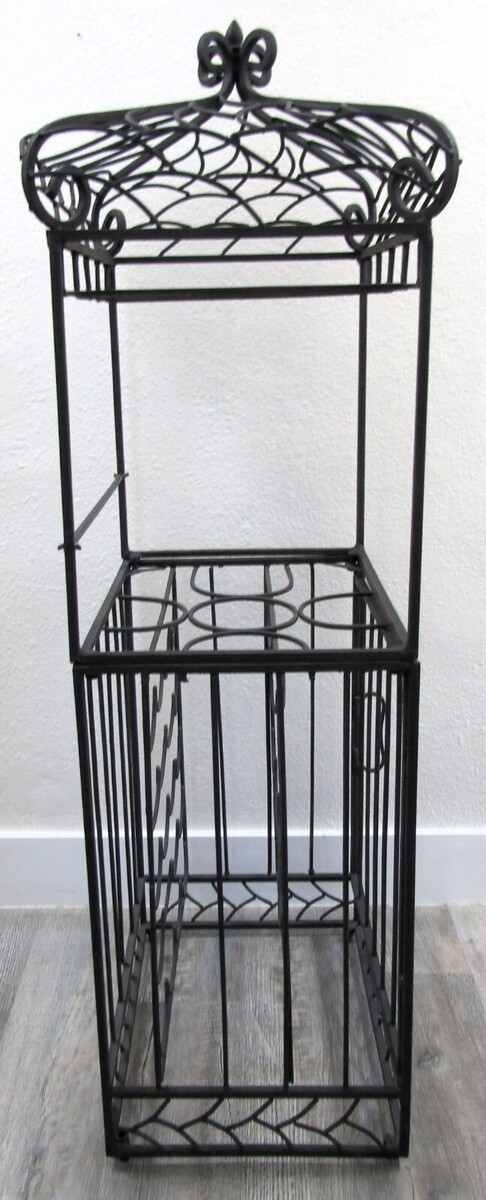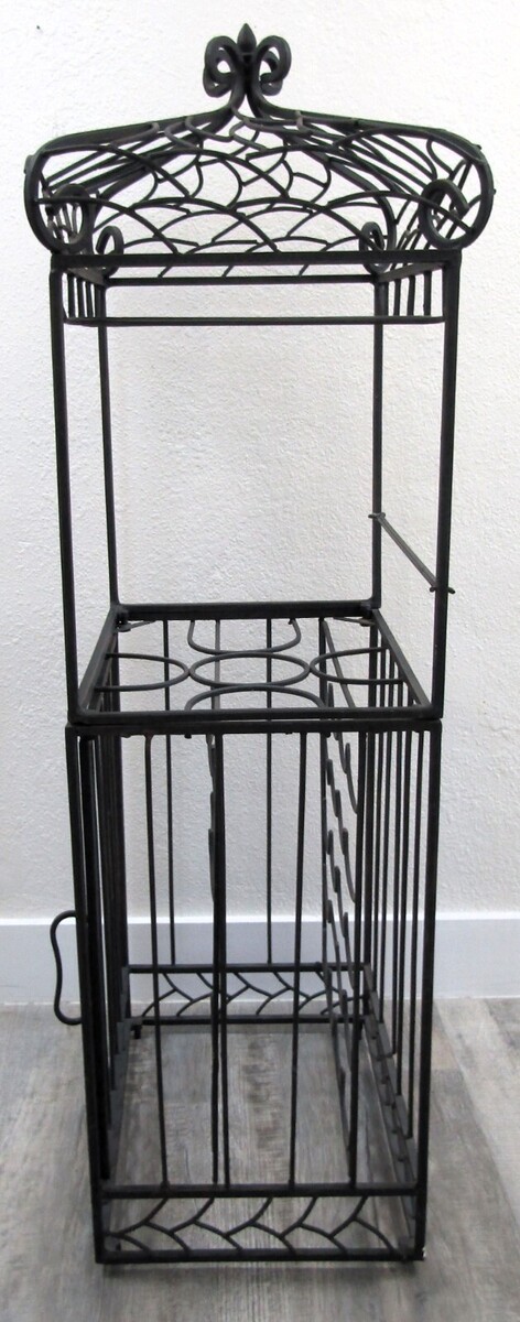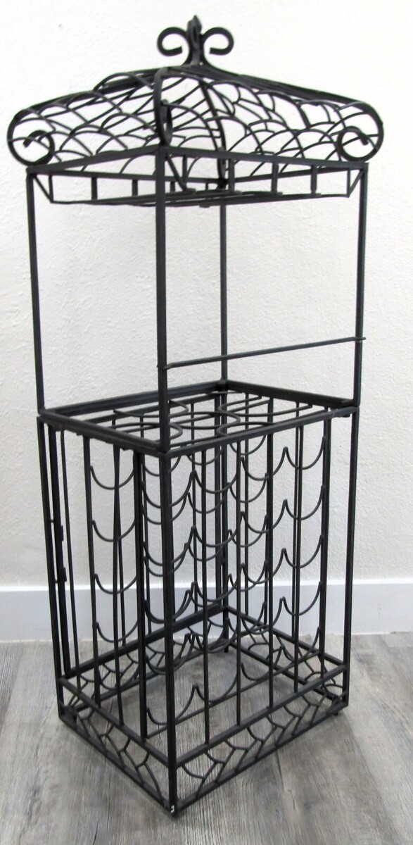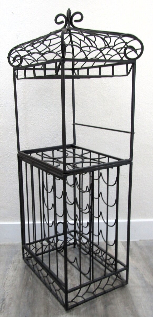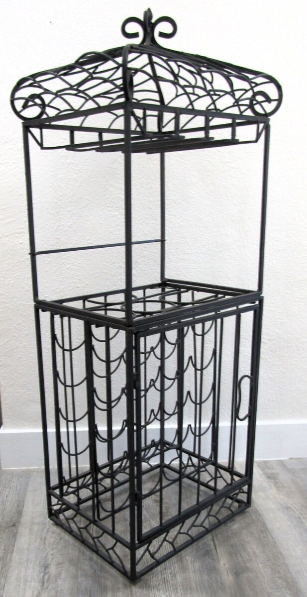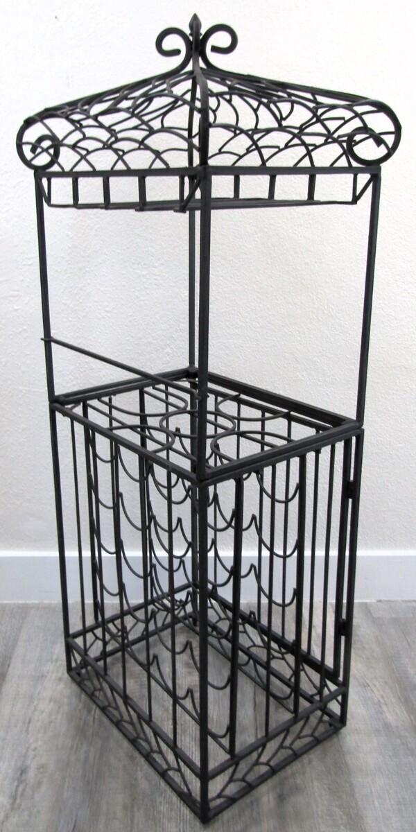 - Spanish Revival Vintage Black Wrought Iron Cage Shape 20 Bottle Wine Rack