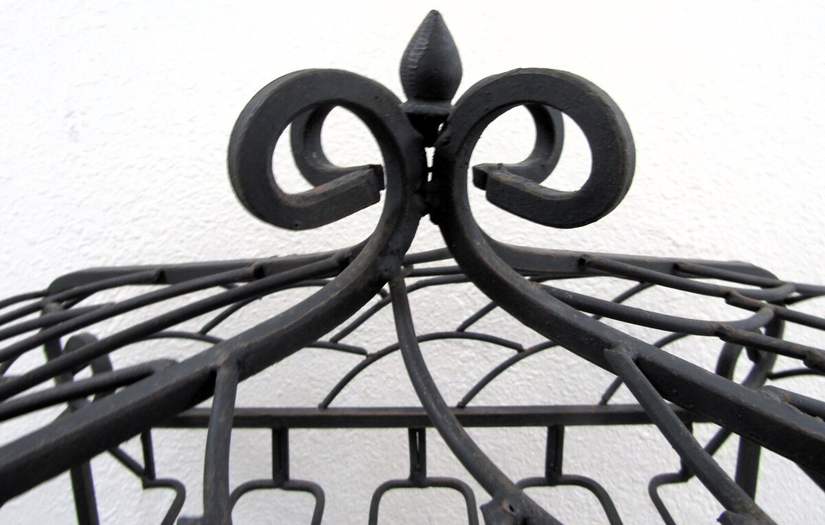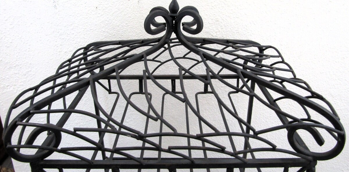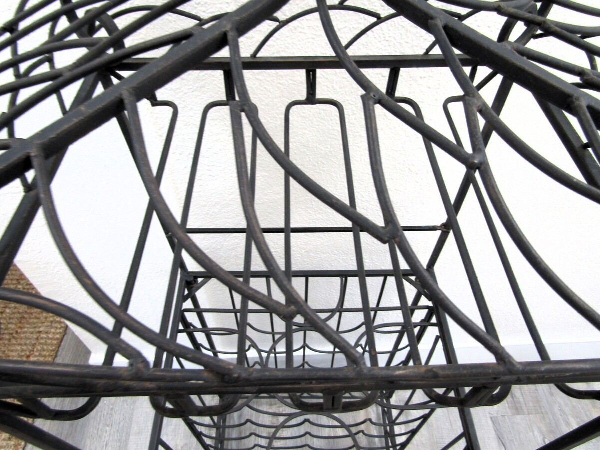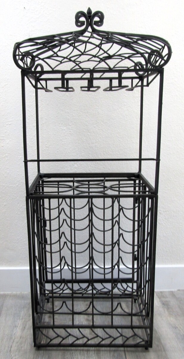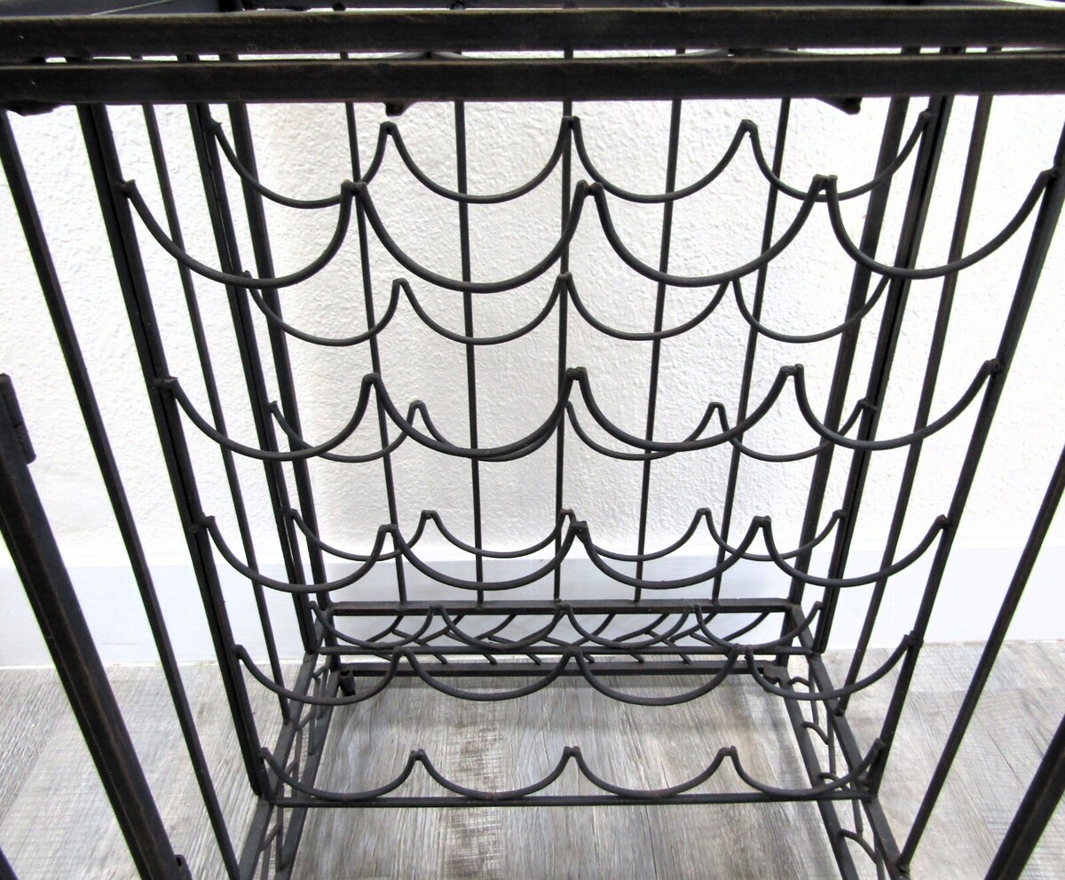 - Spanish Revival Vintage Black Wrought Iron Cage Shape 20 Bottle Wine Rack