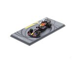 Product description: Red Bull Racing Honda RB18 Max Verstappen #1 Winner Abu Dhabi GP 2022 Produced by Spark, this is a detailed replica of the 2022 RB18 racecar driven by Max Verstappen winning the Abu Dhabi Grand Prix. Max had a record year with 15 victories in 2022 and his 2nd World Championship! Features authentic sponsor and team decals, detailed cockpit, driver figure. Made from Resin. Both scales come encased in acrylic. 1:43rd scale comes with Bigger base with donut tire marks. 1:18th Scale also features donut tire marks. Sizes: 1:43rd: 4", 1:18th 10".