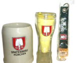 For sale is a wonderfull set of 2 vintage Spaten Boot Spaten Stein and promotion-only, un-used Spaten Bottle Opener / Key Ring Holder from the Spaten Brau brewery in Munich, Germany.