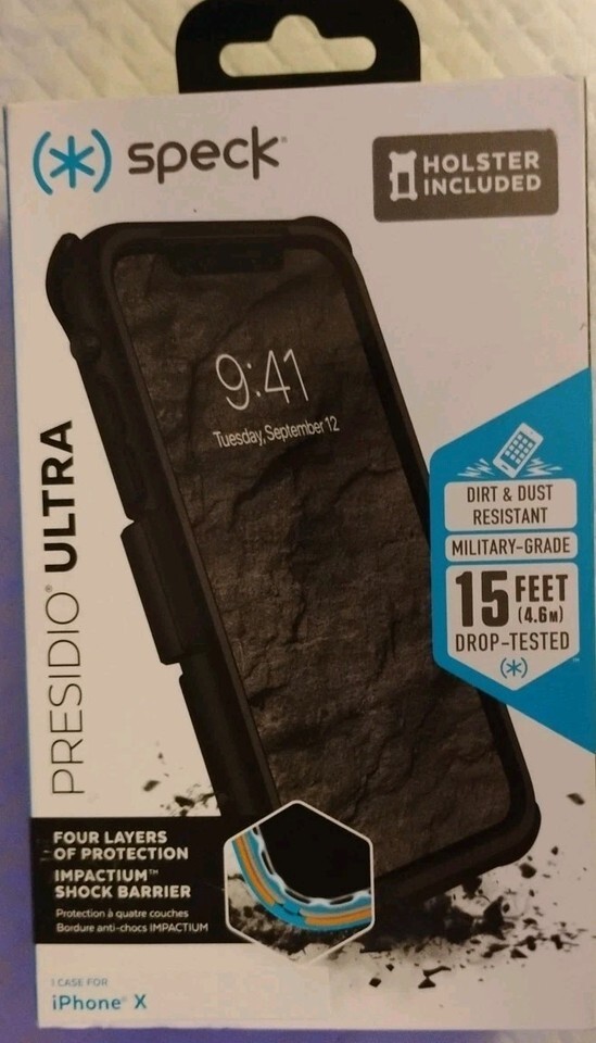 - Speck Presidio Ultra Case for Apple iPhone X XS Black Clip Holster Kickstand NIB