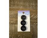 The Spectrum Cool Buttons 3 Piece 3/4" in blue are made of plastic and are perfect for crafting and sewing projects. These decorative buttons add a pop of color and a unique touch to your creations. With their vibrant blue hue and durable plastic material, these buttons are sure to enhance the look of any project with a fun and stylish flair. Perfect for adding closures and connectors to your favorite crafting and sewing projects.