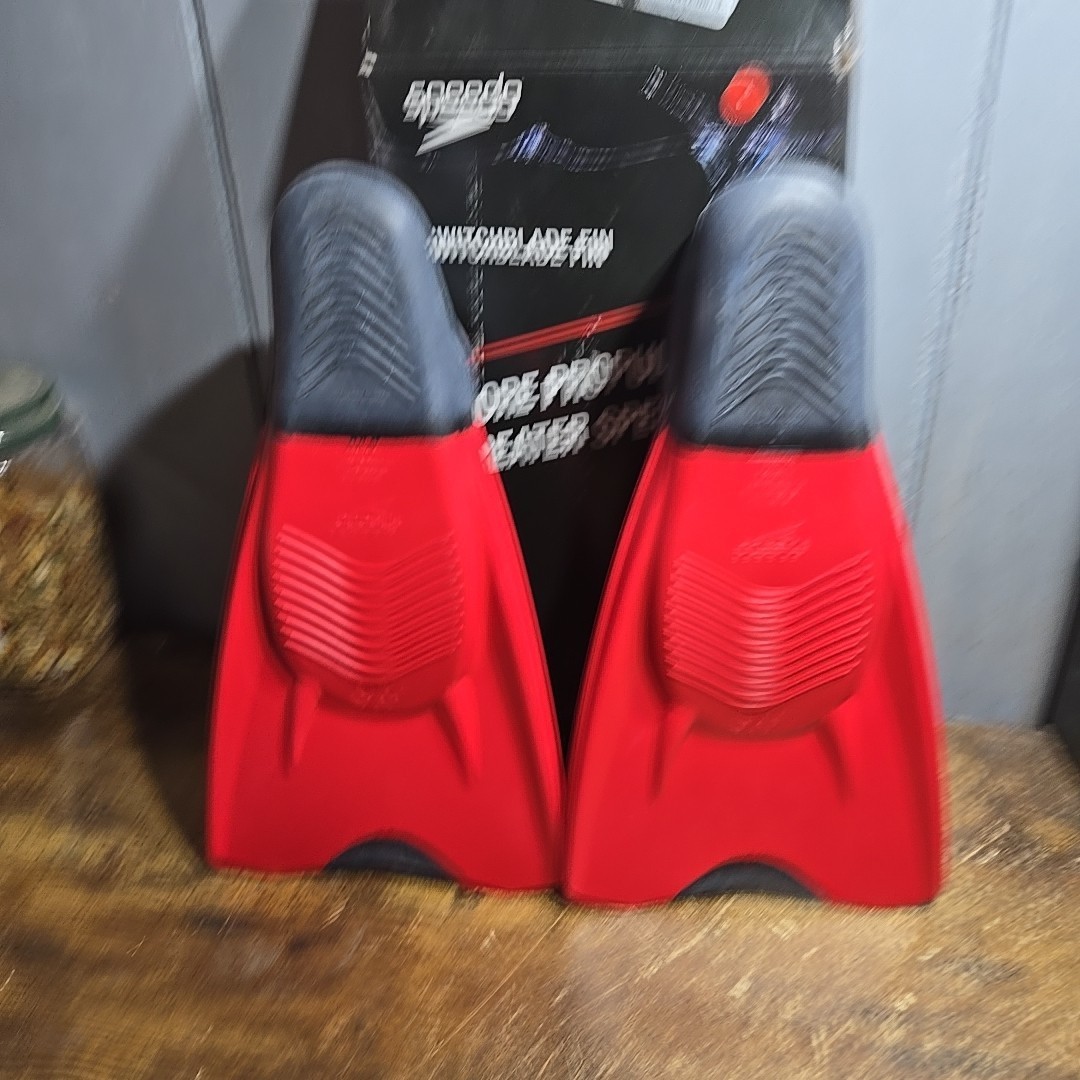 - Speedo Switchblade Swim Fin, Black/Red, Large men size 9-10 womens size 11-12