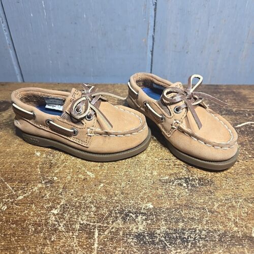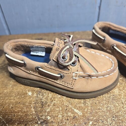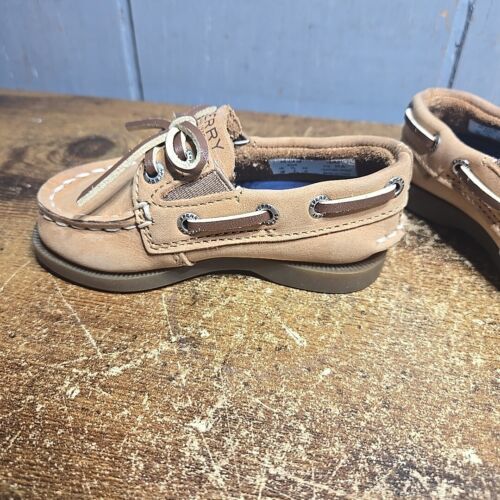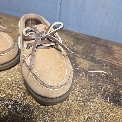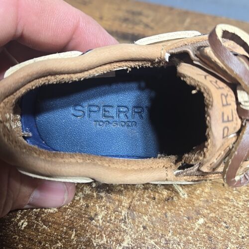 - Sperry Top Sider Lanyard Leather Shoes Youth Boys US Sz 5M Beige Tan. —EUC