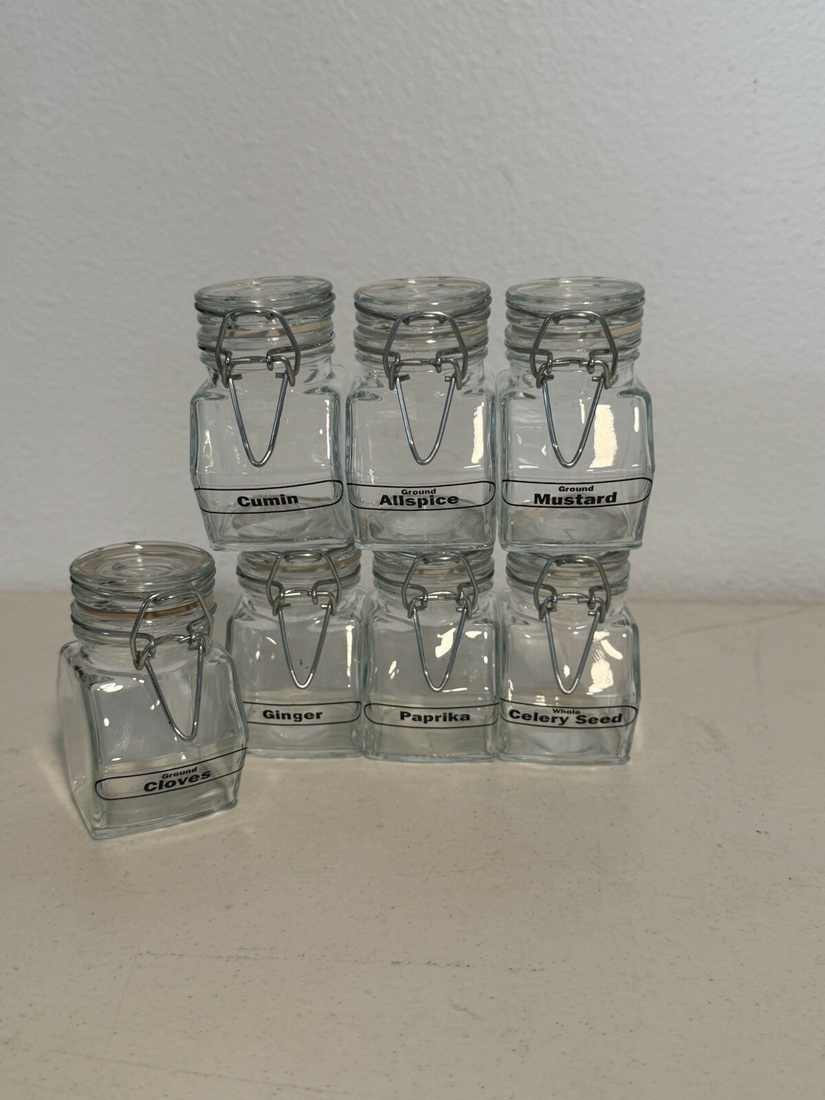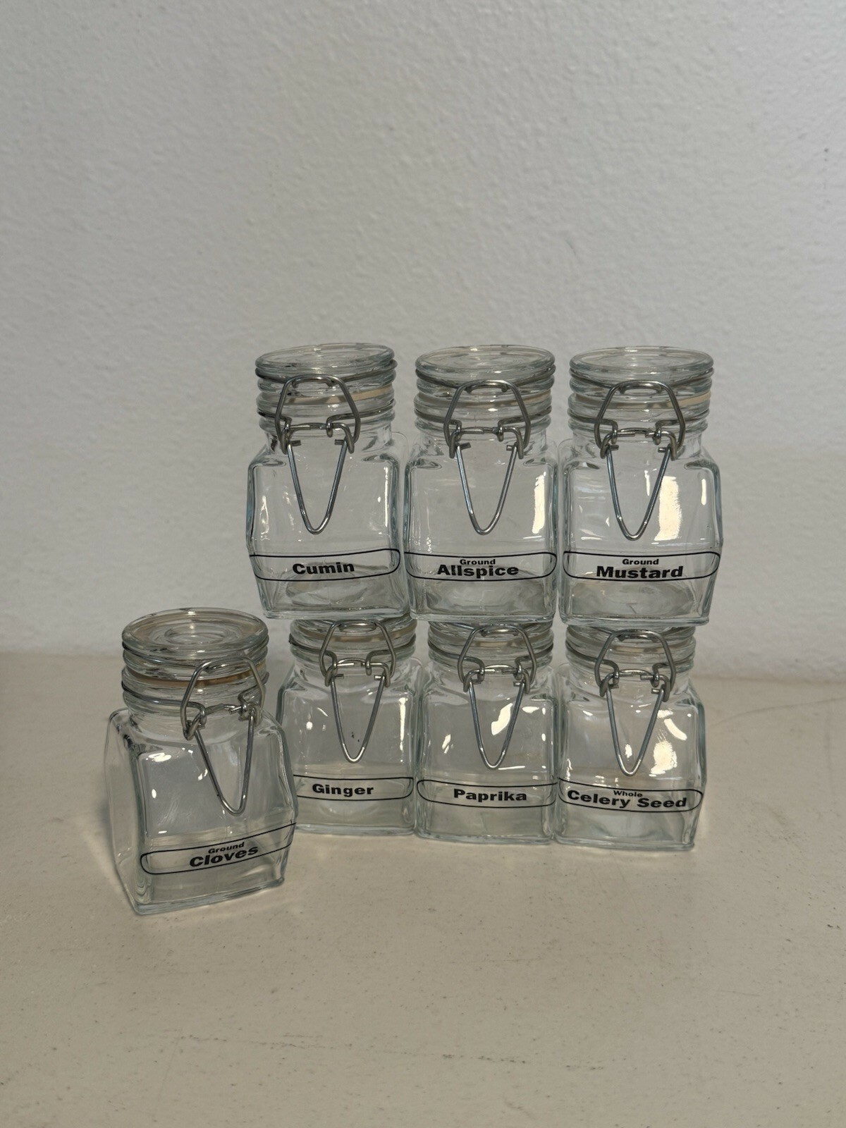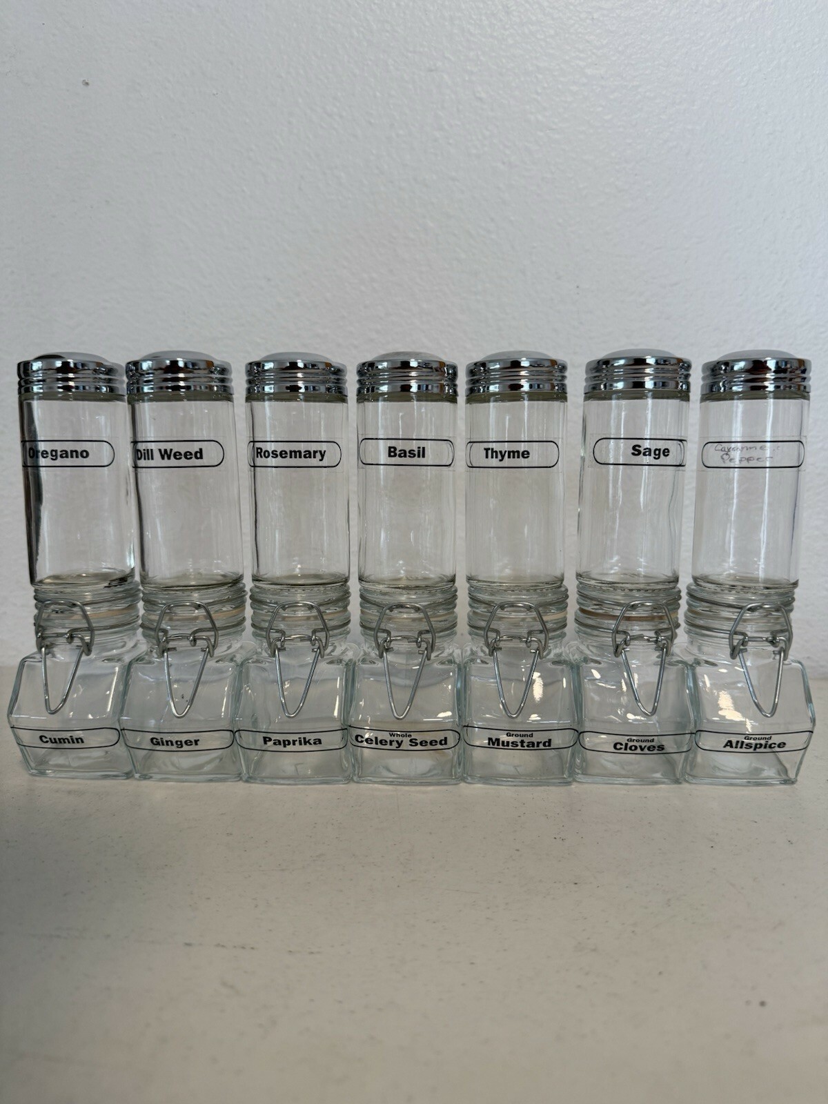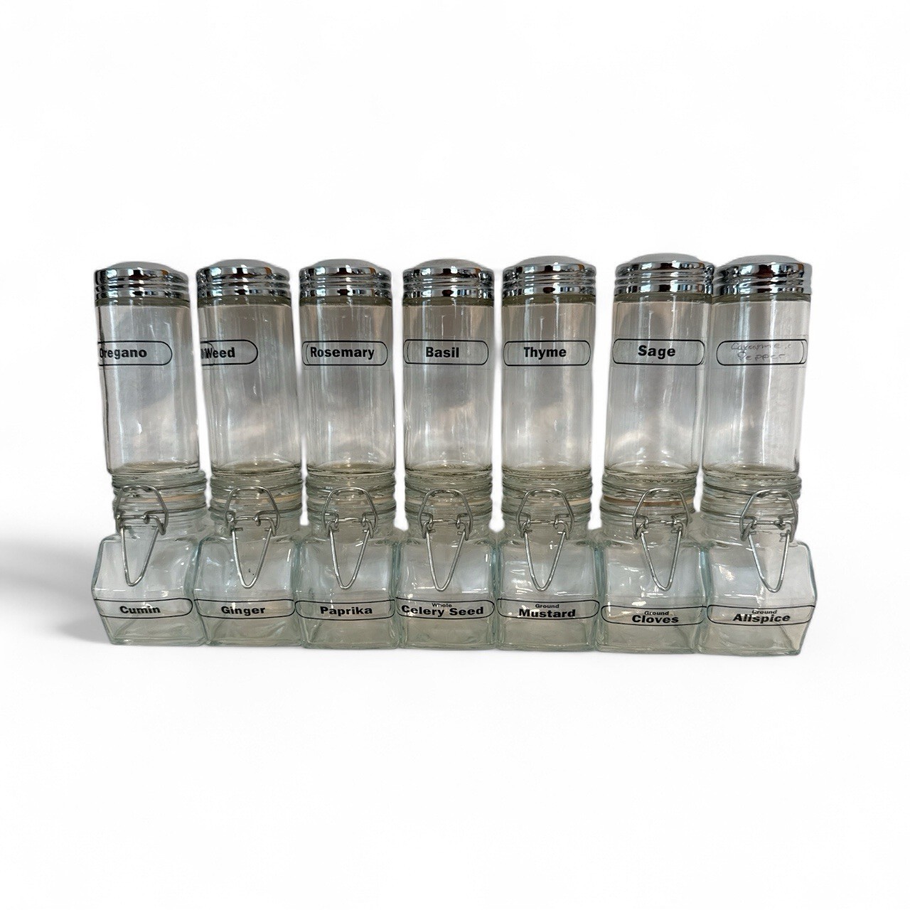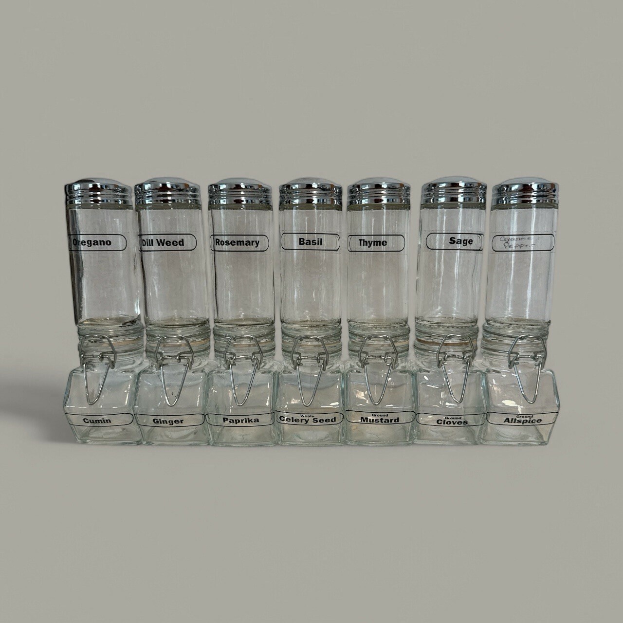- Spice Bottle Jars Apothecary, 14 Glass Jars 7 Airtight Hinged Lid & 7 Screw Top