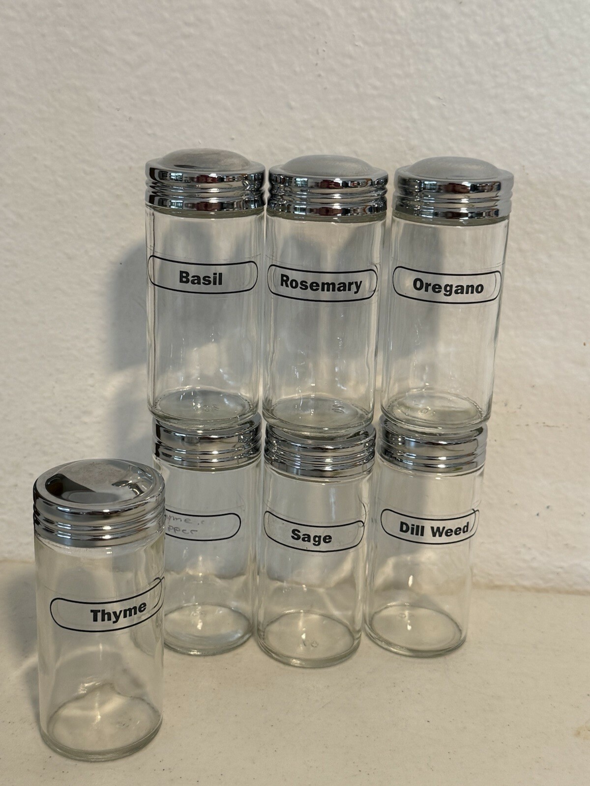 14 Spice Labels Attached. Glass Jars for Spices, Apothecary or Crafts.