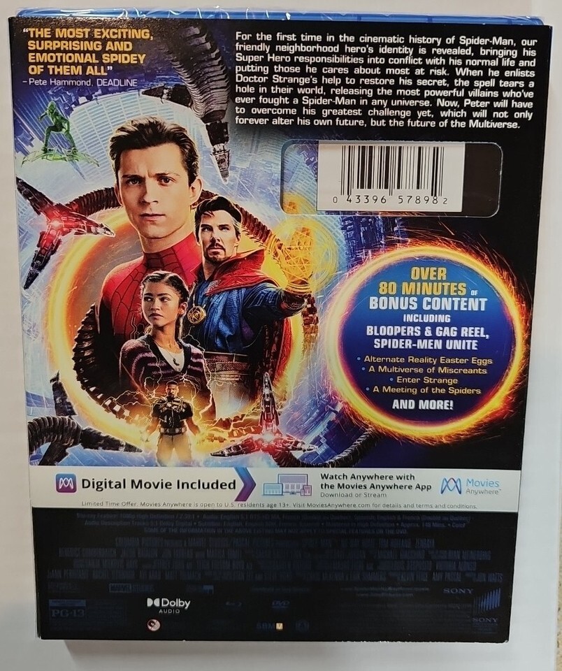 - Spider-Man: No Way Home (Blu-ray, 2021)+DVD+DIGITAL