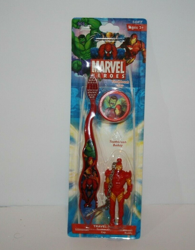 Iron Man Travel Kit Soft Toothbrush Cap Buddy Spiderman Wolverine Hulk Marvel 3+