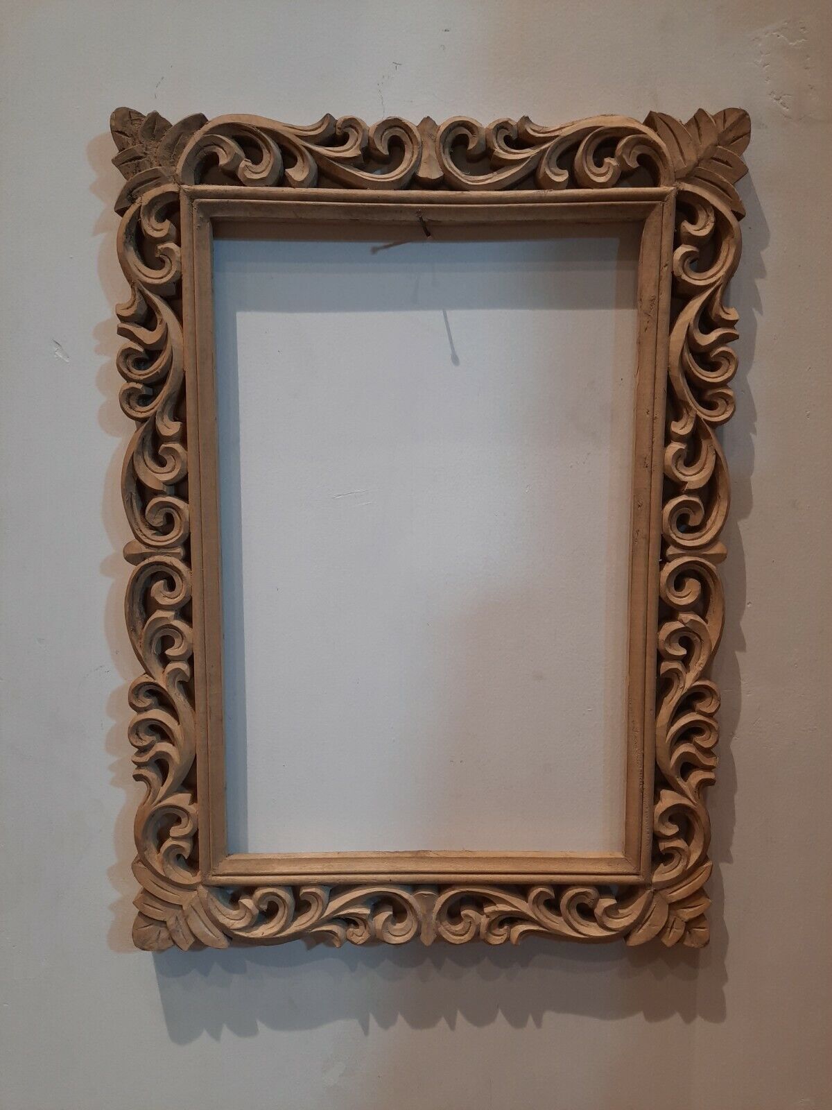 Spiegelrahmen aus Holz, rechteckig, handgefertigt, geschnitzt, natürliche...