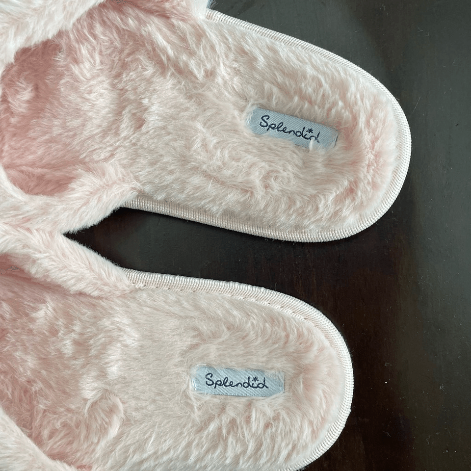 - Splendid Fuzzy Soft Pink House Slippers Scuffs Mules $48 M L 9.5 10 10.5