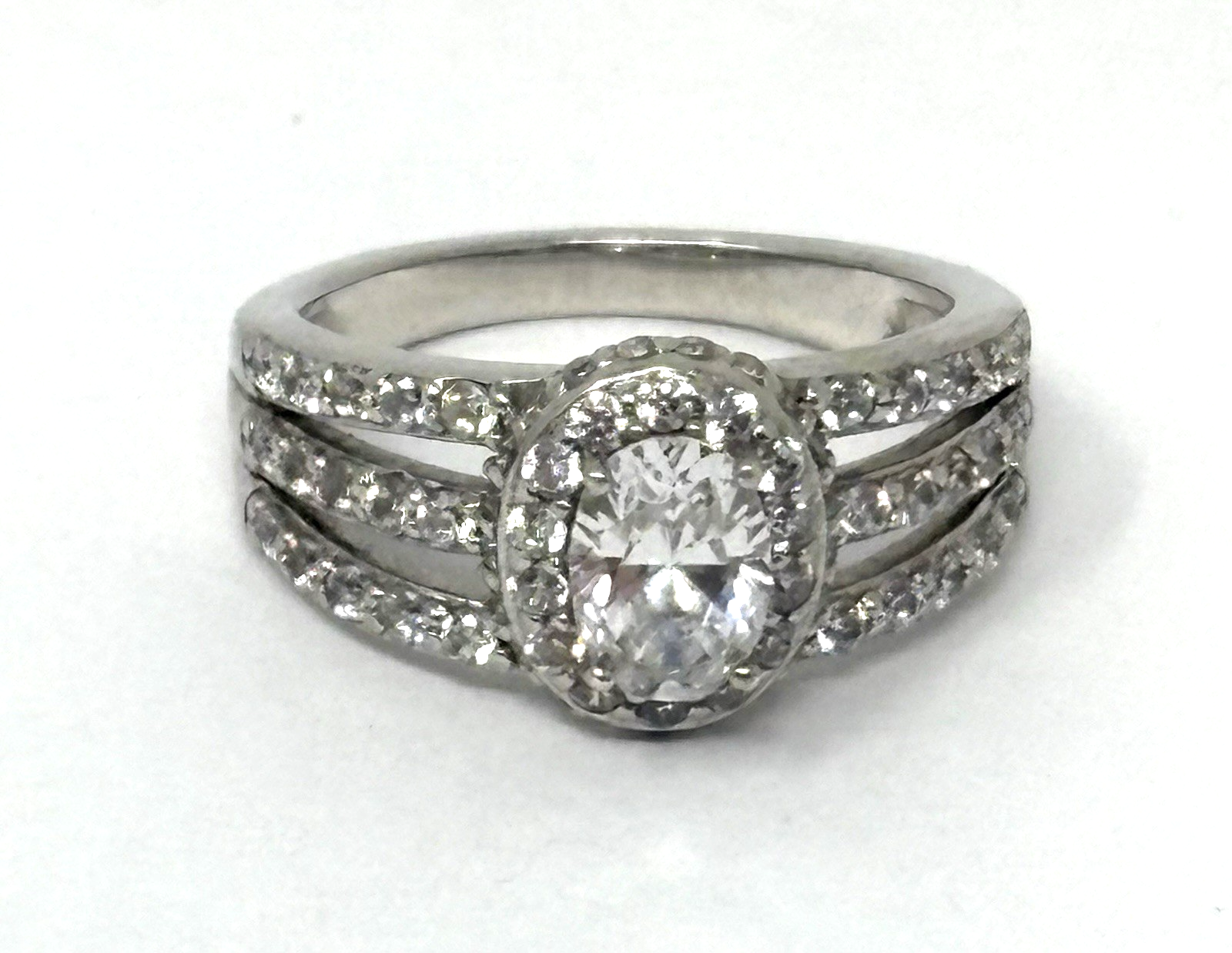 Split Shank Halo Ring In Sterling Silver Band, Size 6