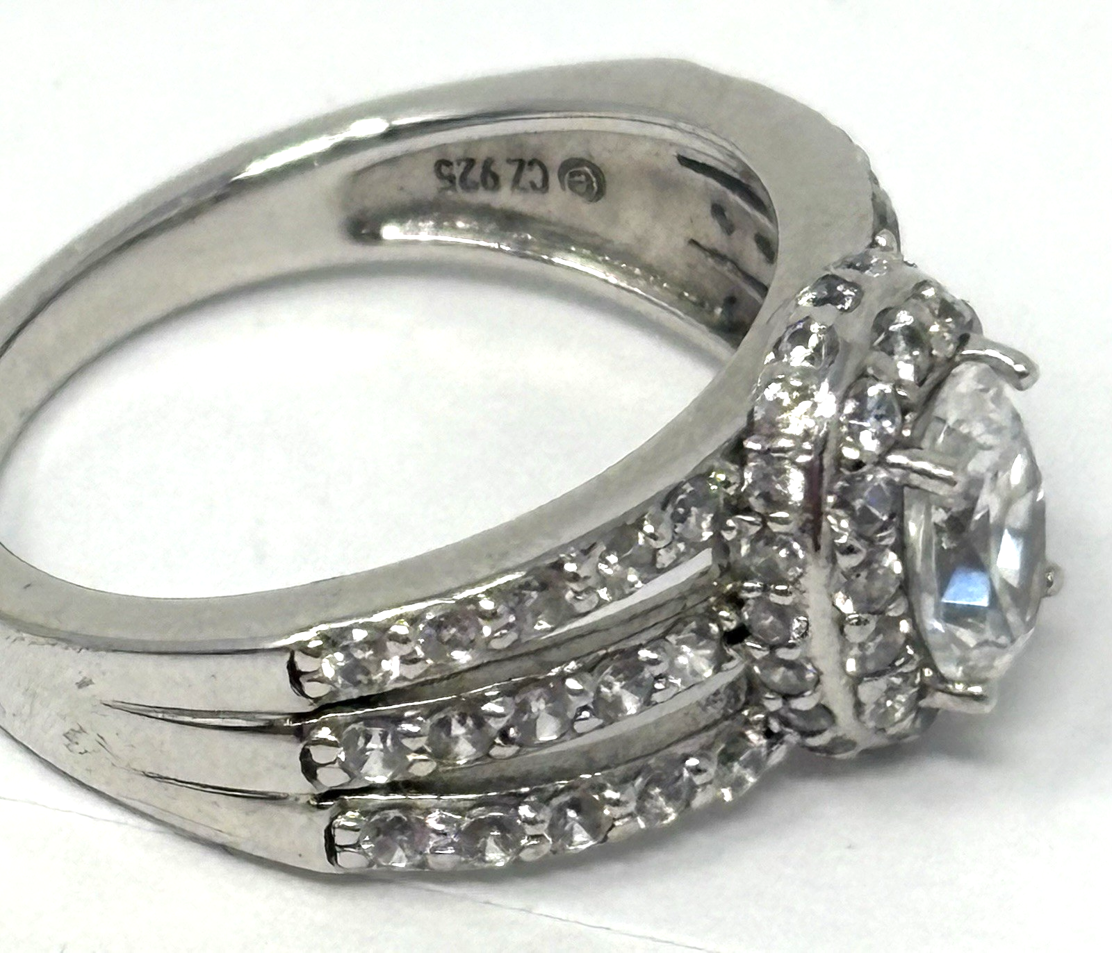 - Split Shank Halo Ring In Sterling Silver Band, Size 6