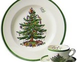 Spode Christmas Tree 3-Piece Buffet Set crafted of high quality earthenware. Includes dinner plate, tea cup and saucer Features festive, distinctive Christmas tree design. Safe in oven, microwave, dishwasher and freezer. New in box. Thanks for looking!