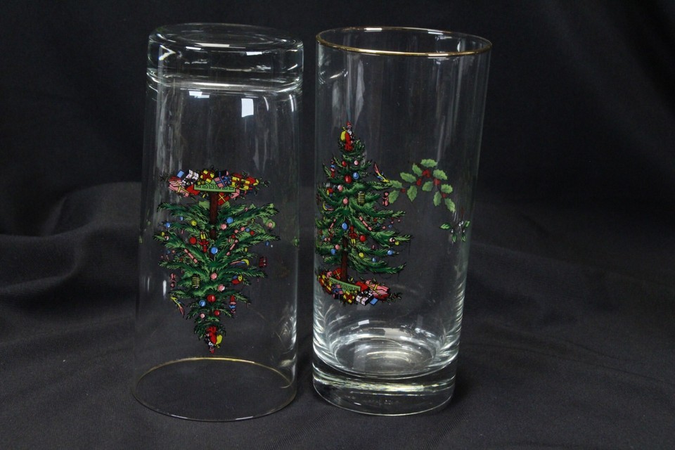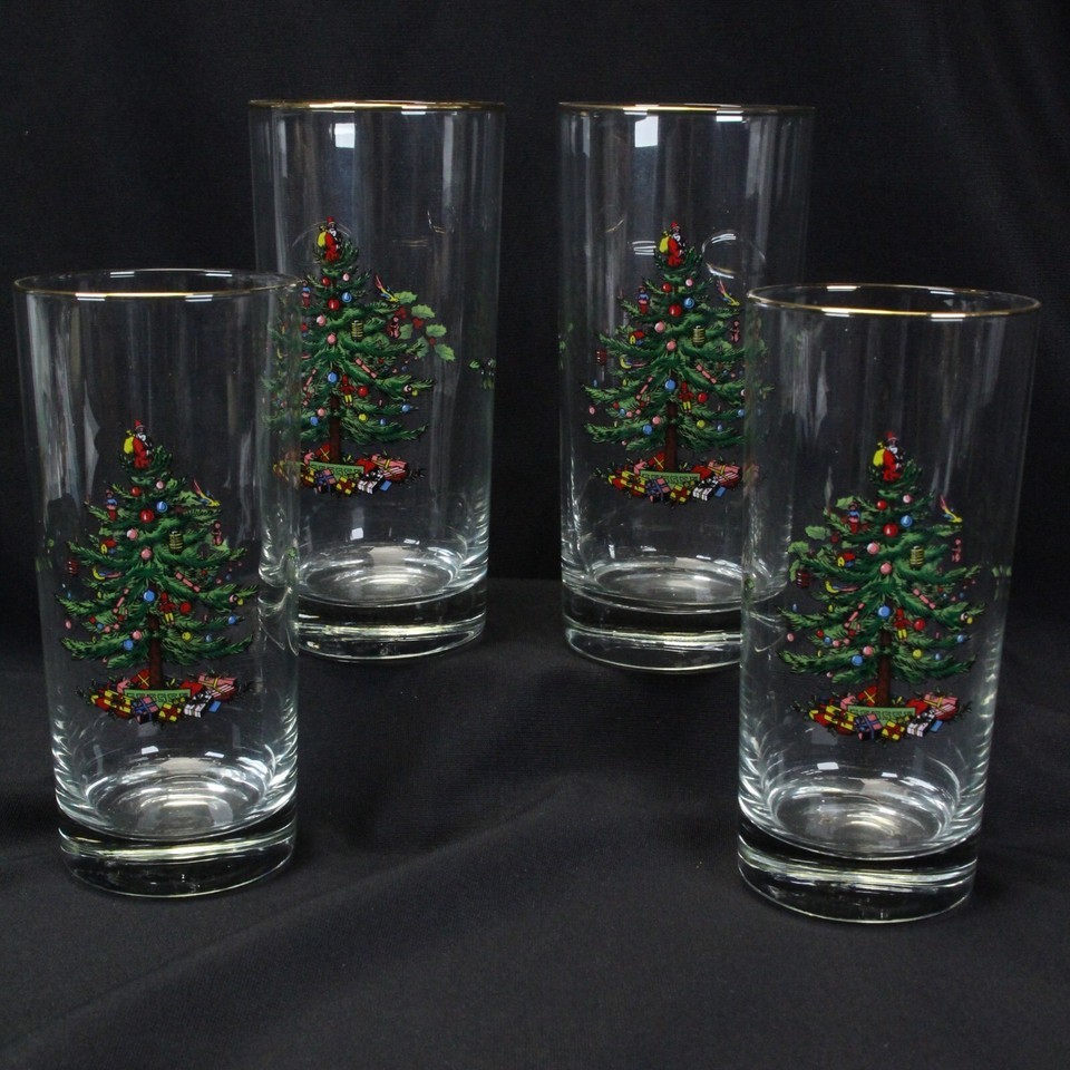 - Spode Christmas Tree Glasses Tumblers 6-1/4" Lot of 4 Xmas