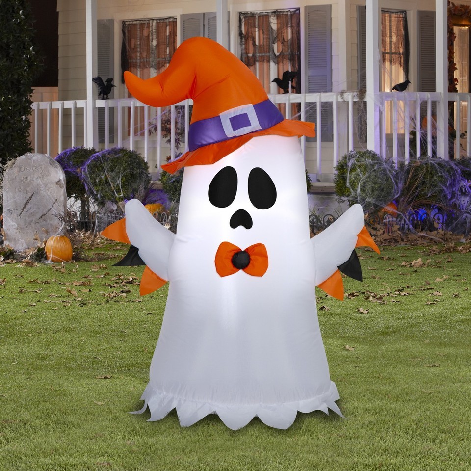 - Spooky Ghost with Witch Hat Airblown Yard Inflatable, Multicolor, 3.5', Hallowee