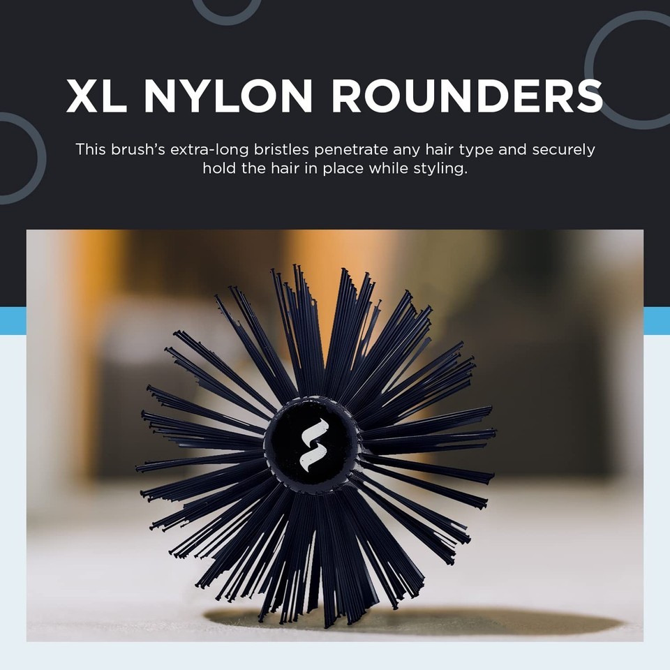 Large 2.75 Inch Barrel - This Spornette Double Stranded XL Nylon 2 3/4 Inch Round Brush is the ideal hairbrush for medium to long length hair. Use to smooth hair and create curls, flips and waves in all hair textures. It has more bristles to cover more hair and quicker. The all nylon bristle brush works with the heat of a blow dryer to create loads of bounce and volume. Master salon-style straightening and smoothing for coarse, curly, or frizzy hair at home.