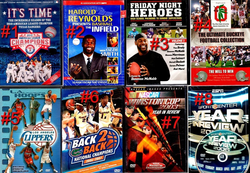 SPORT DVD BASEBALL FOOTBALL BASKETBALL NASCAR RANGER BUCKEYE CLIPPER