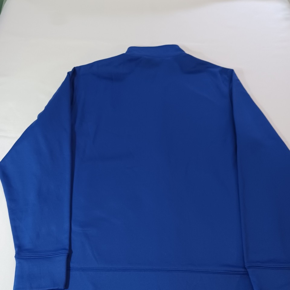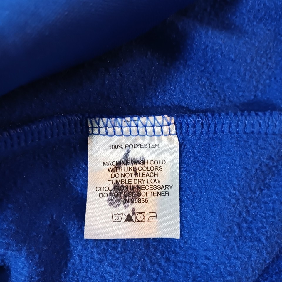 This Sport-Tek jacket is designed for men, featuring a solid blue color with a full zip closure and multiple pockets for convenience. Made of polyester material with stretch features, this size large jacket is suitable for a chest size of 50 inches. The garment is machine washable and has a basic style perfect for casual wear. The jacket is branded as Sport-Tek and is ideal for those who enjoy sports-themed attire.