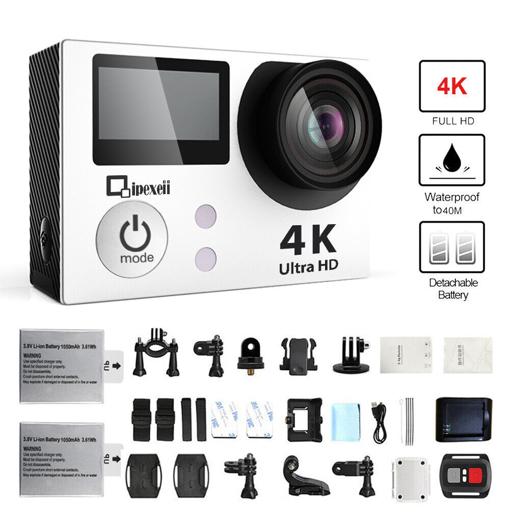 You are Buying a Brand New And Factory Sealed 4K Wifi Sports Action Camera With Double Screen Sensor 100 Ft Waterproof 170 Wide Angle In Silver