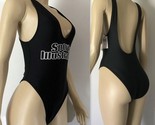 Sports Illustrated Swimsuit Women's High Leg Low Plunge SI Logo One-Piece, Black