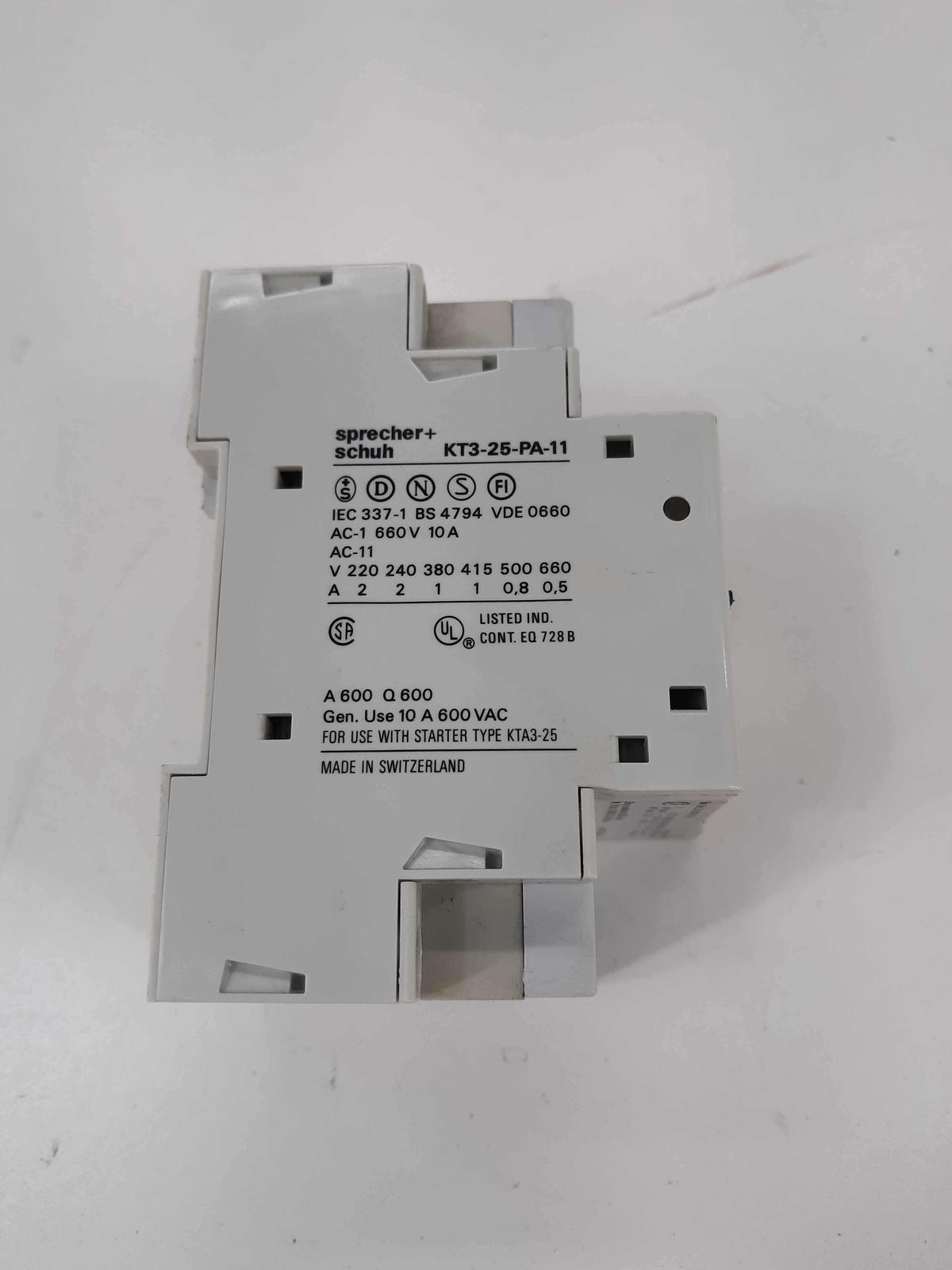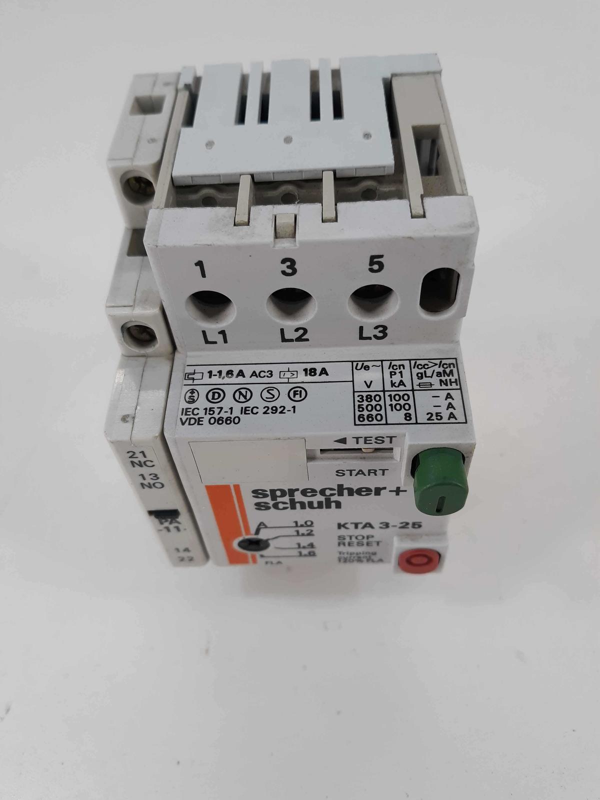 - Sprecher + Schuh KTA 3-25 Motor Starter/Protector W/ KT3-25-PA-11 Aux