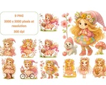This set includes 9 high-quality PNG illustrations featuring adorable gnome girls (with a whimsical elf-like style), flower crowns, cute animals, and spring details. Perfect for sublimation, stickers, scrapbooking, cards, invitations, t-shirts, mugs, wall art, and more.