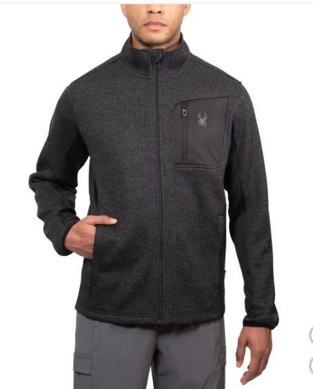 - Spyder Mens Jacket Black Full-Zip Pockets Relaxed Fit Stand Collar Heavyweight