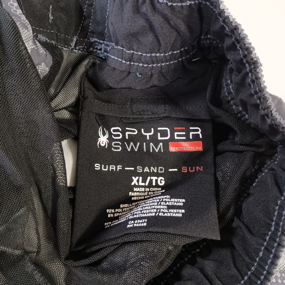The Spyder Swim Surf Sand Sun UV Protection Trunks in XL size feature a stylish gray digital camo print, perfect for beach days. Made from a blend of polyester and spandex, these swim bottom trunks offer UV protection, making them ideal for surfing and other recreational activities in the water. The polyester lining provides added comfort and durability, while the Spyder brand ensures quality and style. Whether you're hitting the beach or going for a swim, these trunks are a practical and fashionable choice for men looking to protect their skin from the sun. Normal wear. Sizes are approximate.See pictures.