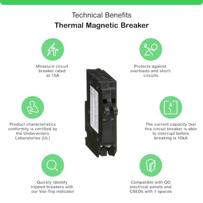 The QO 15 Amp Tandem Single-Pole Circuit Breaker features 2 circuits in the space of 1. The breaker has 2 tandem poles, each rated for up to 15 Amp. The unit uses a thermal-magnetic tripping mechanism with a Visi-Trip indicator that helps you easily identify a tripped circuit. This 1-pole breaker is compatible with old-style, non-class, CTL and Plug-On Neutral Square D QO load centers.