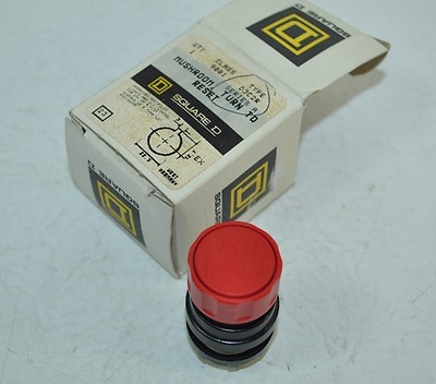 Square D Red 29mm Mushroom Button - Push to Maintain - Turn to Reset Model# D3C2R Please look at pictures. Please ask questions. Will ship international. Please look at pictures.