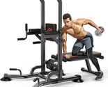 * PULL UP DIP STATION FOR TOTAL BODY WORKOUT: This all-in-one workout station features a pull-up bar, dip station, and a collapsible bench for sit-ups and bench presses, offering a comprehensive home gym experience for strength training and toning.