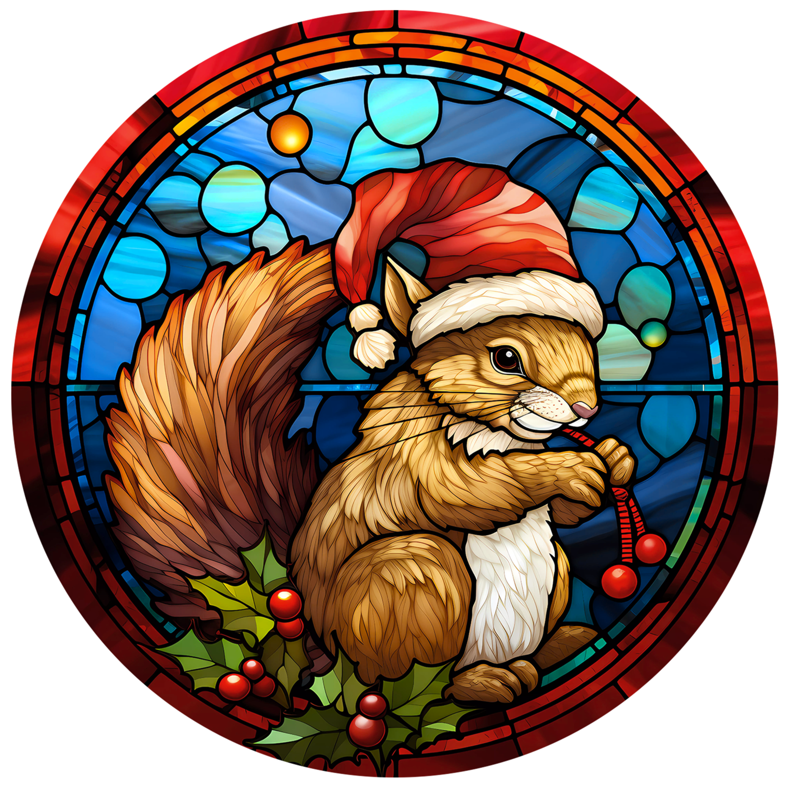 - Squirrel Santa Suncatcher Gift, Sunset Stained Glass Style Window Hangings, Wall