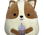 Squishmallow Backpack Regina Corgi Dog 13” Stuffed Plush w/ Boba Tea Backpack