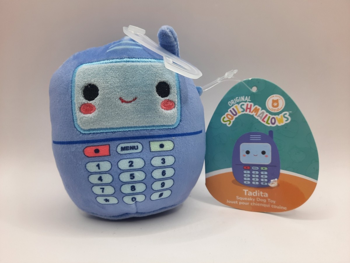 The Squishmallow Crinkle Pet Toys Deja Tadita by the brand Squishmallows is a brand new stuffed toy made of plush material. It features a squeaker for added entertainment for pets. This toy is perfect for dogs and provides them with a fun and unique play experience. The Squishmallow Crinkle Pet Toys are designed to be cute and cuddly, while also offering a fun crinkle sound to keep pets entertained.