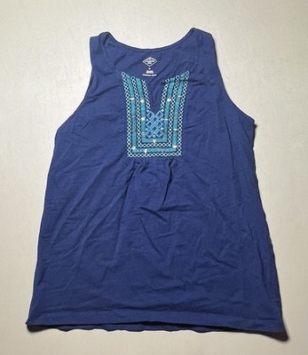 St John’s Bay Tank Top Women’s M Blue W/ Embroidered Design