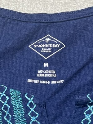 The St John's Bay Tank Top for women in size M is a stylish and comfortable addition to any wardrobe. The blue color with embroidered design adds a touch of flair and sophistication to any outfit. Made for women who appreciate quality and style, this tank top is perfect for casual or dressed-up occasions.