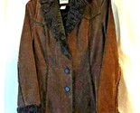 St. Johns Bay Women's Jacket Coat Brown Buttons Notch Lapel Leather Long Sleeve M