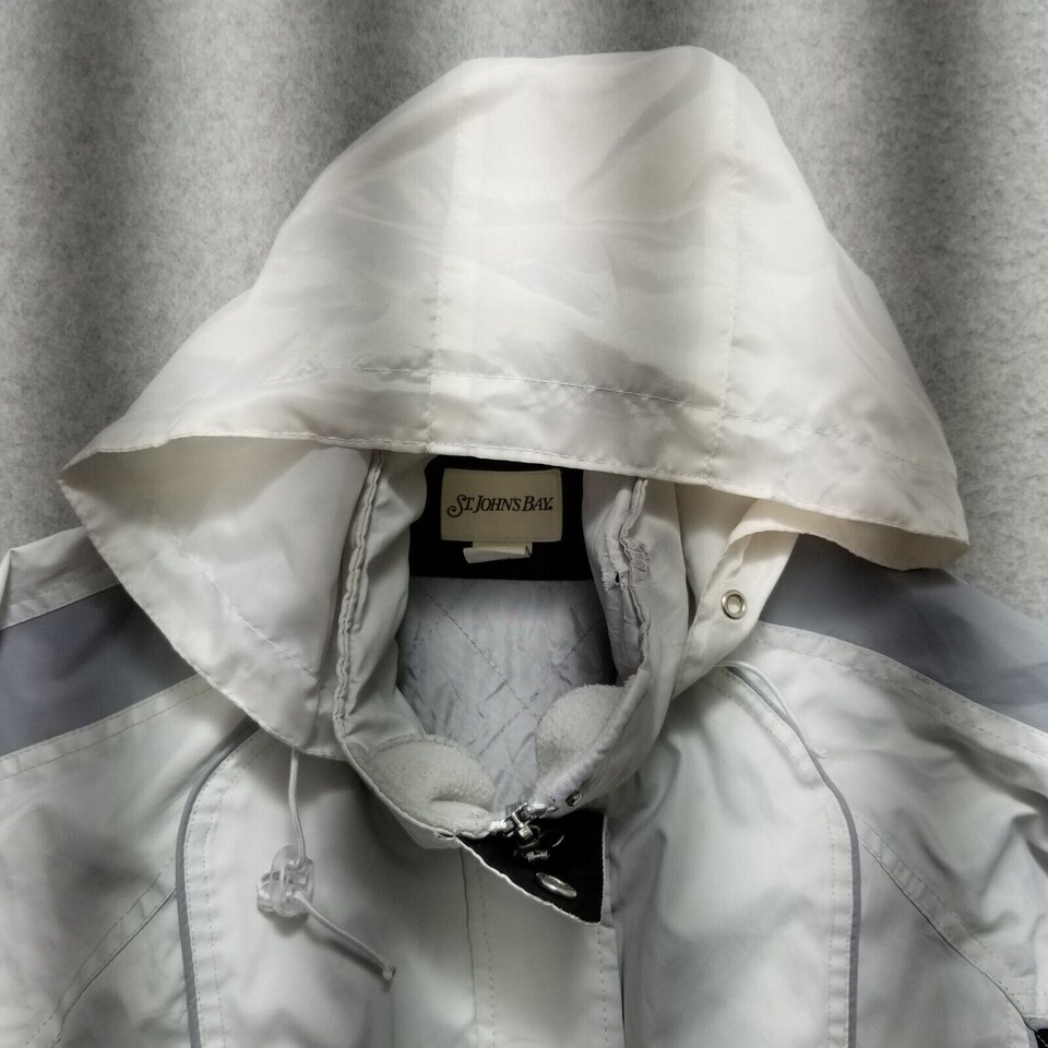 - St Johns Bay Womens Jacket Small White Black Pockets Full Zip Hooded