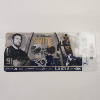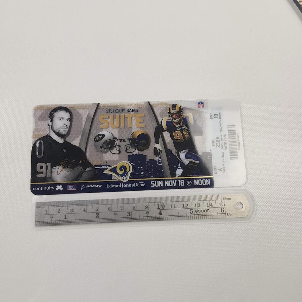 ? Chris Long #91 is pictured on the ticket face?key Rams defensive star