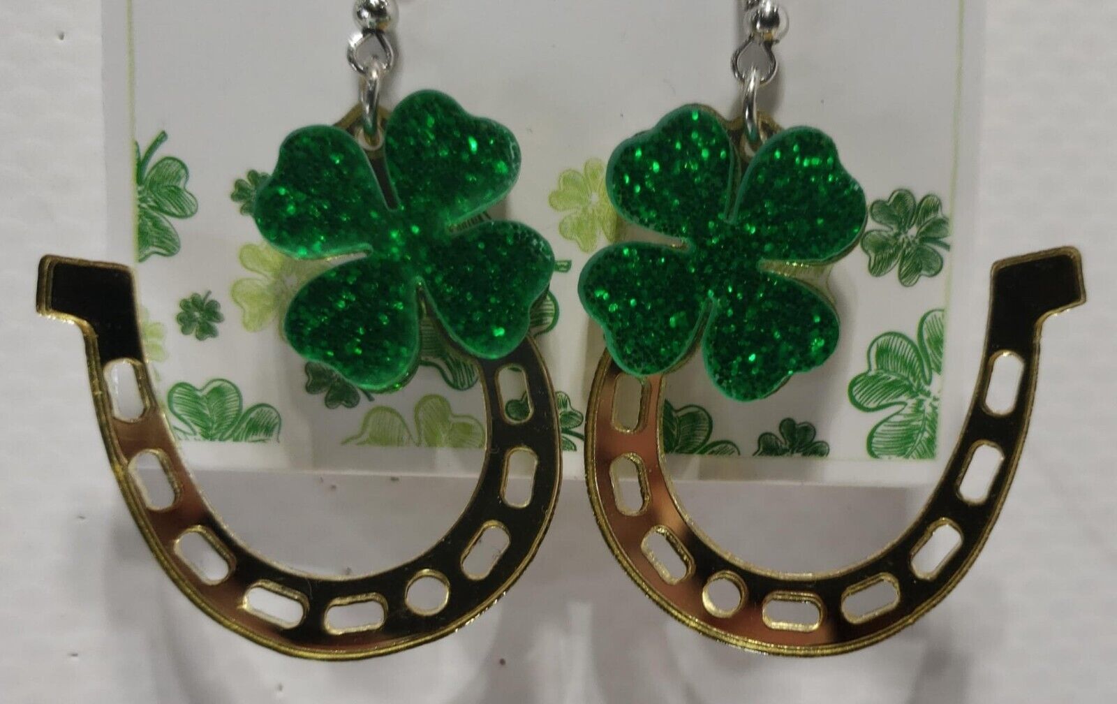 - St Patrick's Day Earing Green Leaf Dangle Earrings