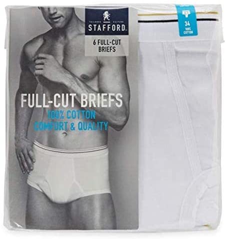 - Stafford 6 Pack 100% Cotton Full-Cut Briefs White Size 30