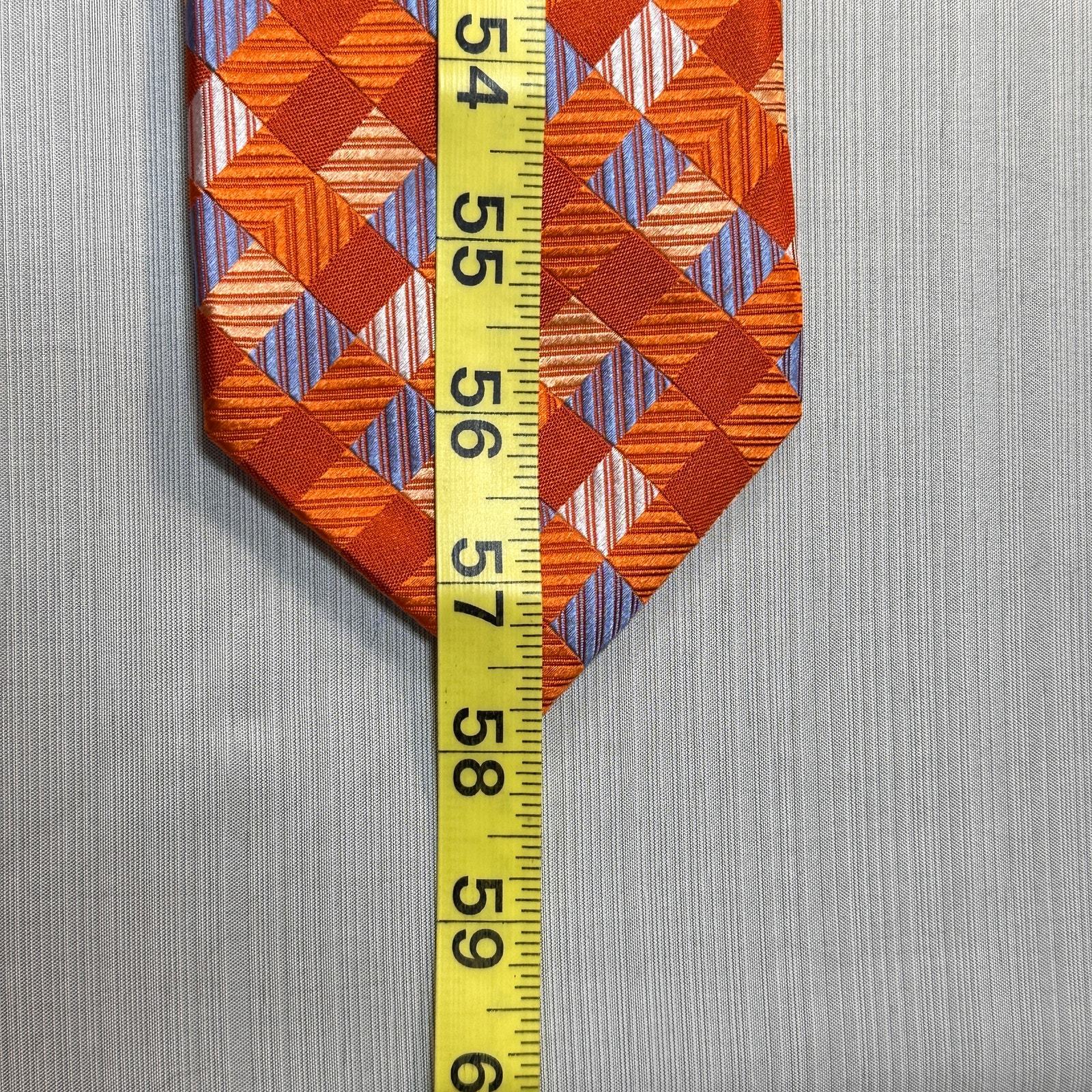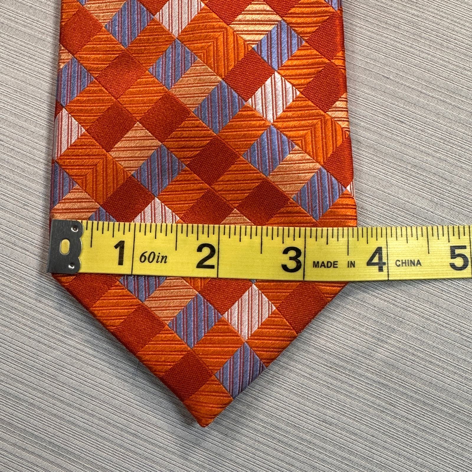- Stafford Essentials Mens Tie Orange Blue Gingham Traditional Silk NeckTie Preppy