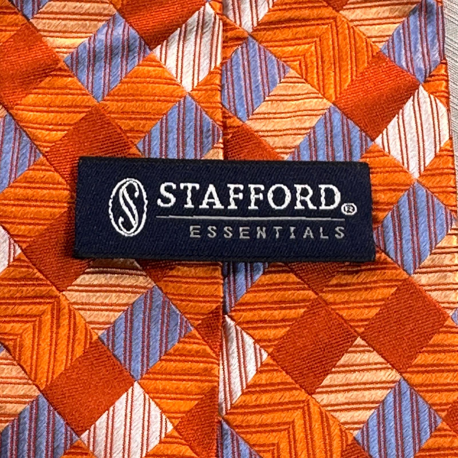 Stafford Essentials Mens Tie Orange Blue Gingham Traditional Silk NeckTie Preppy