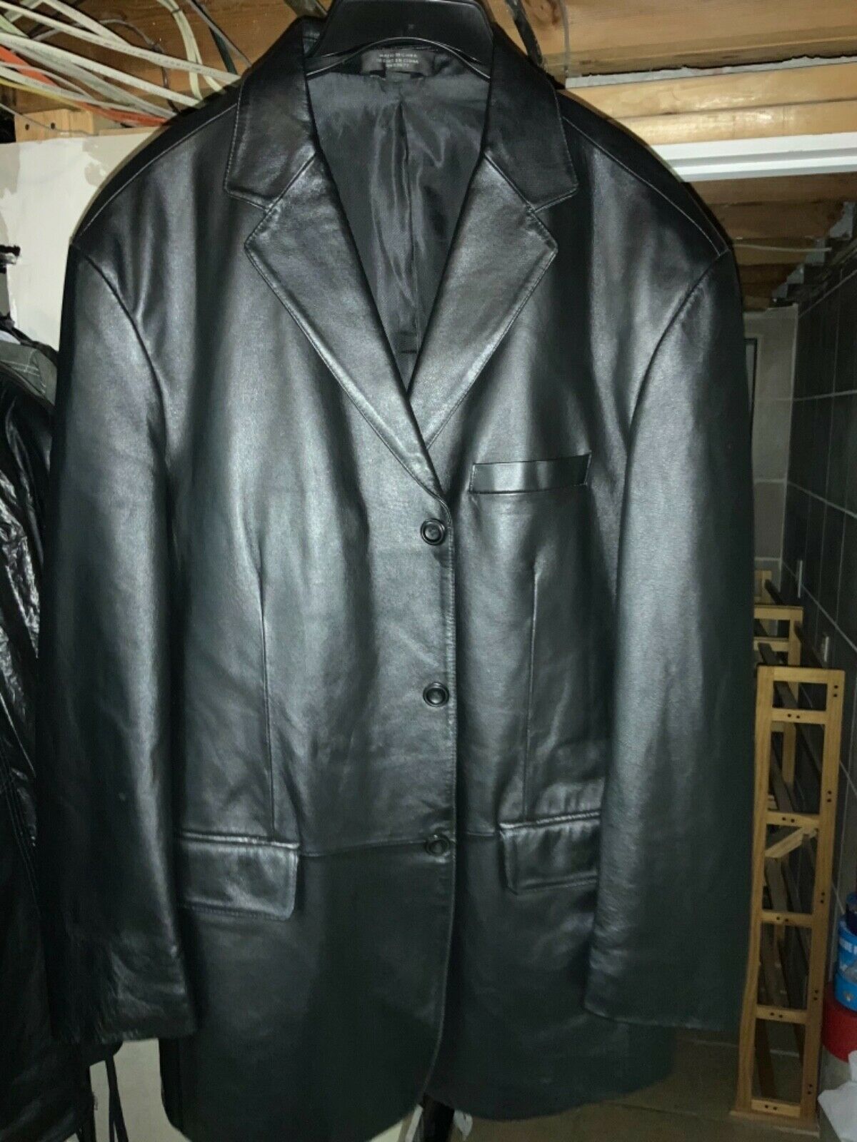 - Stafford Mens Black Soft Leather 3 Button Blazer Jacket Sport Coat Large