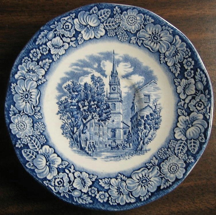 - Staffordshire Liberty Blue Saucer Old North Church Paul Revere FREE SHIPPING USA