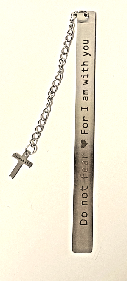 It's inscribed with the following verse from Isaiah 41:10 "Do not fear, for I am with you".
