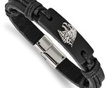 - Stainless Steel Antiqued & Polished Eagle Head Black Leather Bracelet
