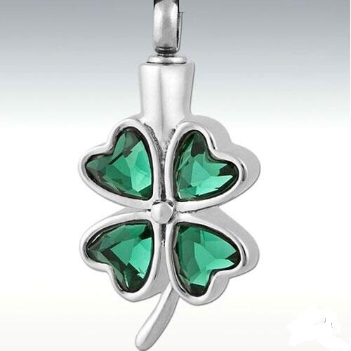 - Stainless Steel Green Glass Clover Shamrock Funeral Cremation Urn Pendant